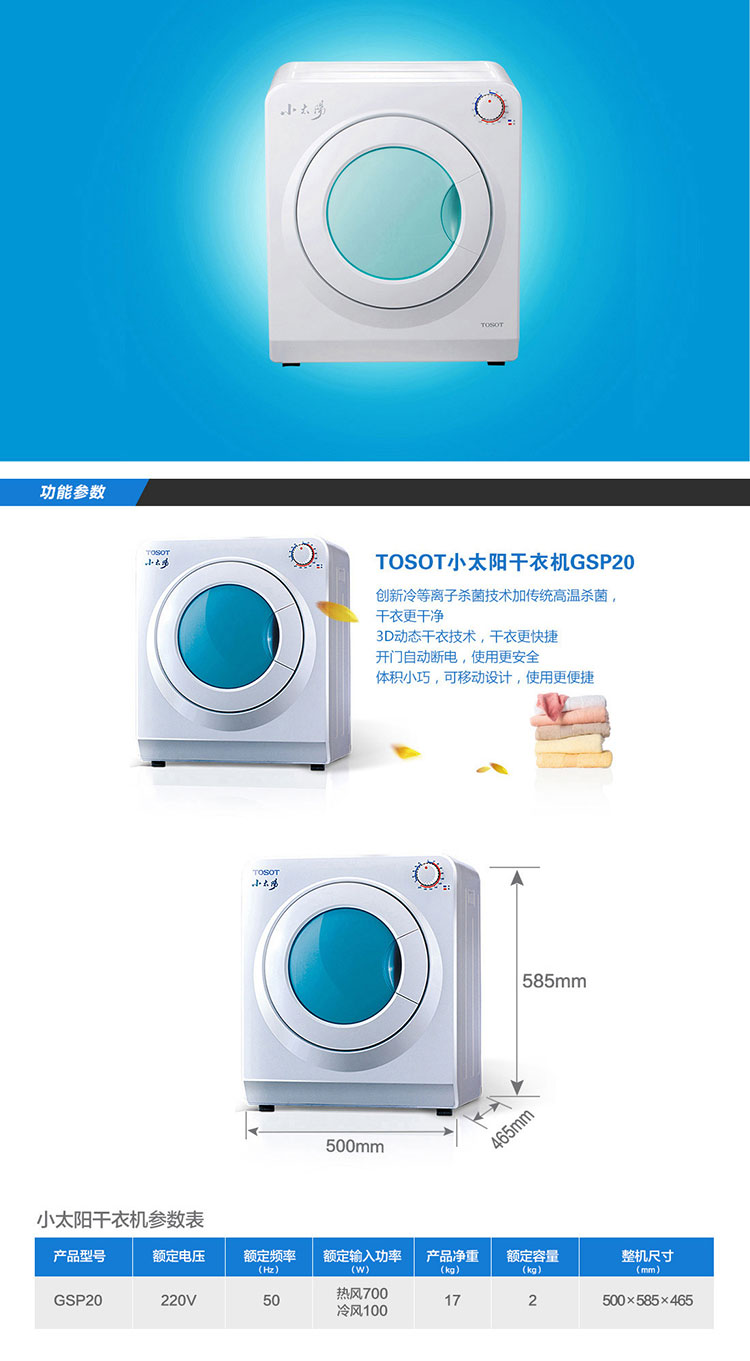 格力滾筒式烘干機(jī)家用干衣機(jī)寶寶嬰兒專用小太陽(yáng)靜音烘衣機(jī)GSP20