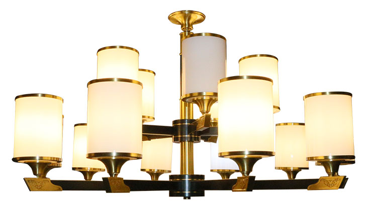 歐特朗吊燈L2045 10+5新美式全銅燈吊燈簡約臥室書房餐廳玻璃歐黃銅色吊燈