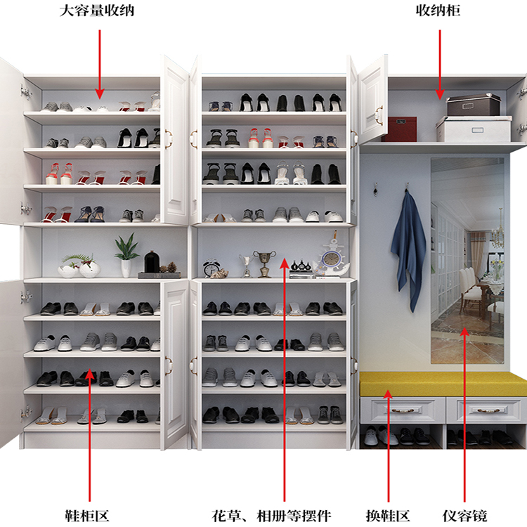 鞋柜生活中不經(jīng)意間的小美好,總能乘隙而入般的心動(dòng),寬大鞋柜沒讓你的鞋子分門別類,