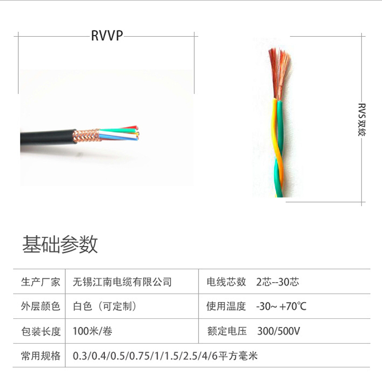 江南電纜RVV2芯*0.75/1/1.5/2.5/4/6國(guó)標(biāo)銅芯護(hù)套電線電源線100米