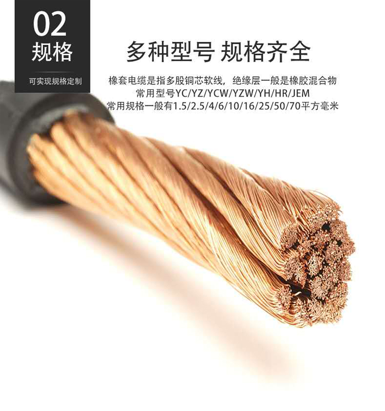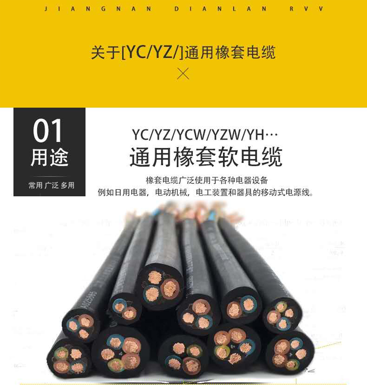 電線電纜橡套電纜是指多股銅芯軟線,絕緣層一般是橡膠混合物