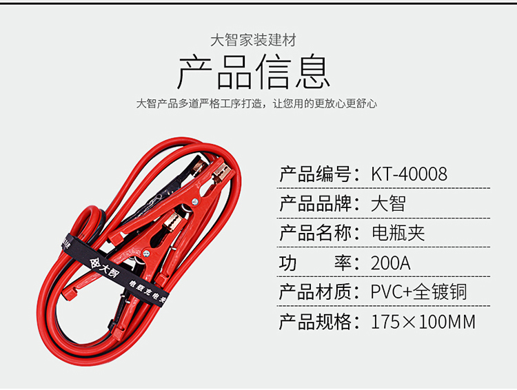 大智汽車電瓶線搭火線純銅電瓶夾電池連接線應(yīng)急通用打火線搭電線