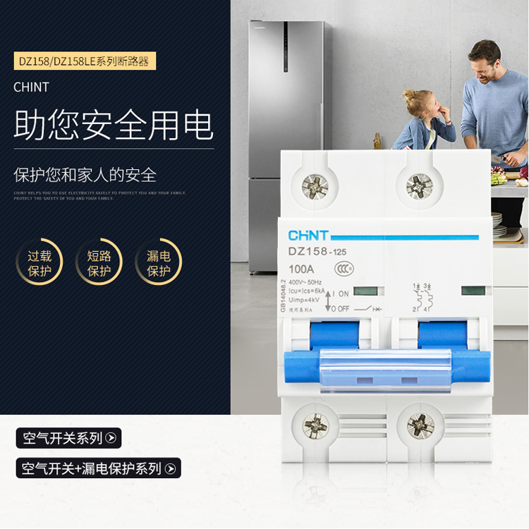 正泰 大功率家用 帶漏電斷路器 DZ158LE 3P 100A 正泰空氣開(kāi)關(guān)
