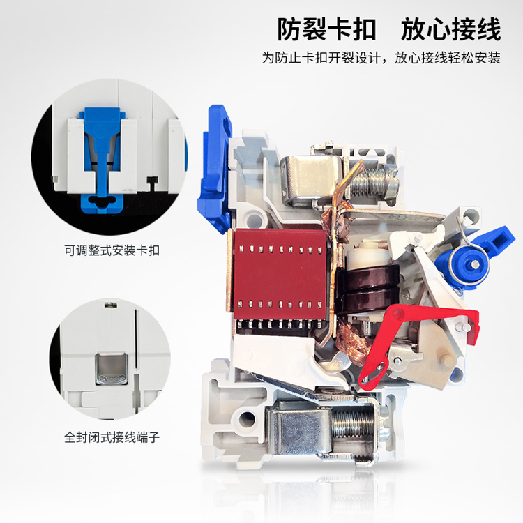 斷路器防裂卡扣 放心接線 為防止卡扣開(kāi)裂設(shè)計(jì),放心接線輕松安裝