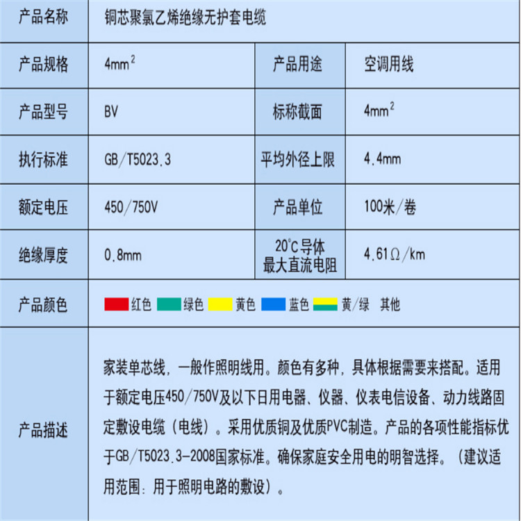 江揚(yáng)電線(xiàn)電纜單芯硬線(xiàn)國(guó)際純銅家裝工程電子線(xiàn)電源線(xiàn)廠(chǎng)家每根小護(hù)套薄厚均勻,嚴(yán)格的工序,有效防止電流擊穿打火,保證安全用電。