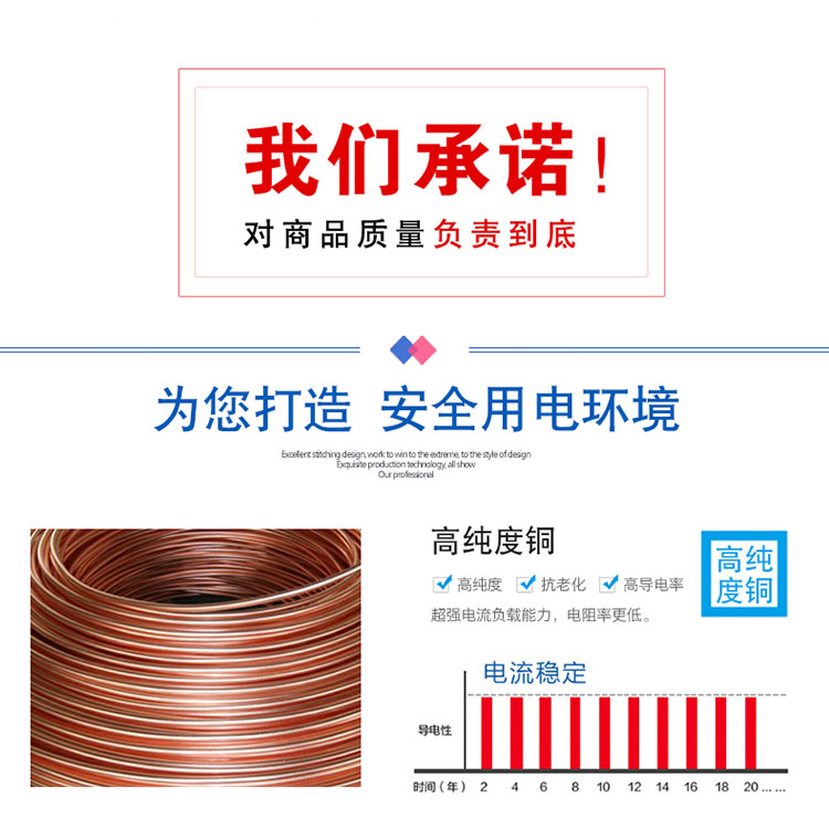 江揚電線電纜單芯硬線 平方純銅家裝工程電源線廠家直銷芯采用高精度無氧銅材質,足夠平方粗度低電阻,高效傳輸,不易發(fā)熱。