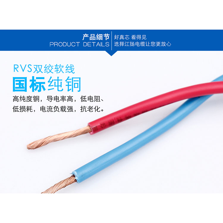 江揚(yáng)電線電纜雙絞軟線銅芯電纜花線消防線線芯采用高精度無(wú)氧銅材質(zhì),足夠平方粗度低電阻,高效傳輸,不易發(fā)熱。