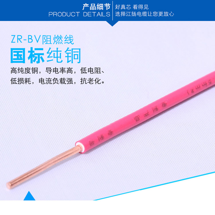江揚(yáng)電線電纜阻燃單芯硬線銅芯家裝家用電線線芯采用高精度無(wú)氧銅材質(zhì),足夠平方粗度低電阻,高效傳輸,不易發(fā)熱。