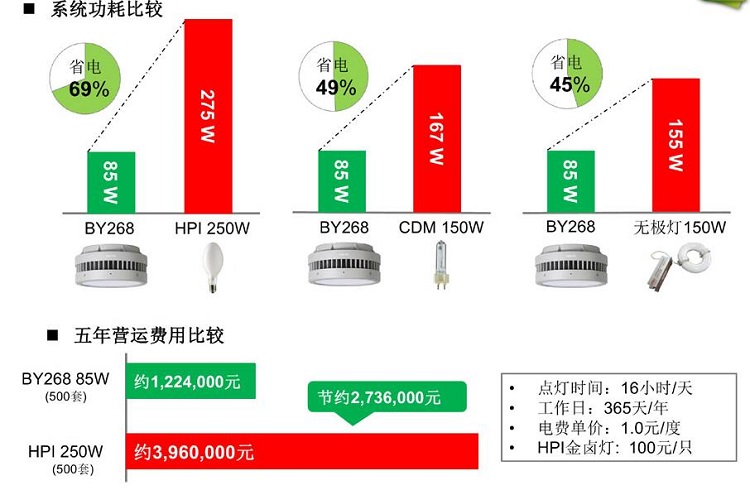飛利浦低天棚L(fēng)ED工礦燈 替換方案節(jié)能比較
