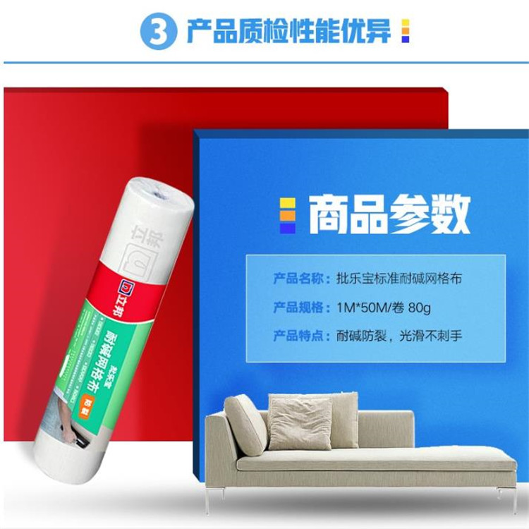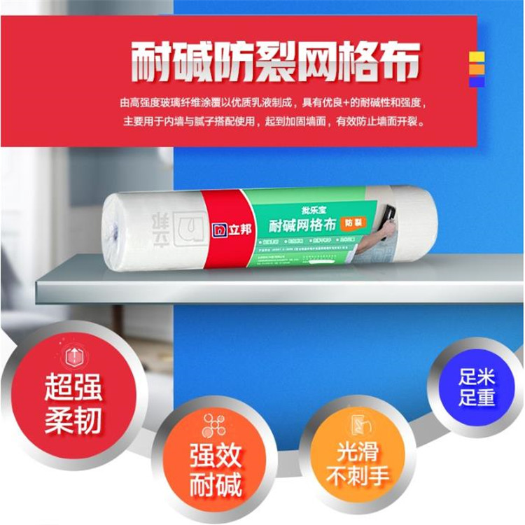 立邦批樂寶標(biāo)準(zhǔn)型耐堿網(wǎng)格布,超強(qiáng)柔韌、強(qiáng)盜耐堿、光滑不刺手、足米足重