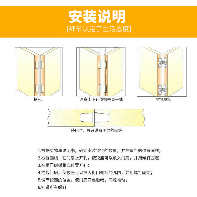 鉸鏈安裝后,開啟角度可達180度,關閉后,暗鉸鏈不外露,美觀大方。