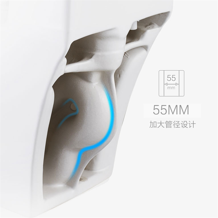自潔釉面靜音抽水馬桶排污管道加大至中55mm,便于污物排出,不易堵塞管道;