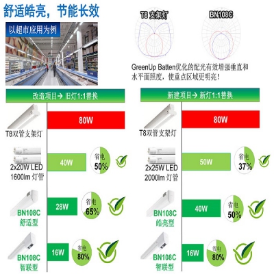 飛利浦新一代GreenUp BN108一體化LED支架燈具