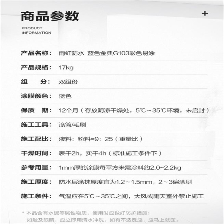雨虹防水藍(lán)色金典G1031,超強(qiáng)抗慘防潮、粘結(jié)力強(qiáng)