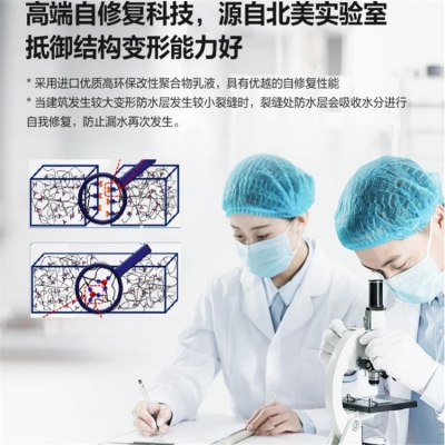 采用進(jìn)口優(yōu)質(zhì)高環(huán)保改性聚合物乳液,具有優(yōu)越的自修復(fù)性能