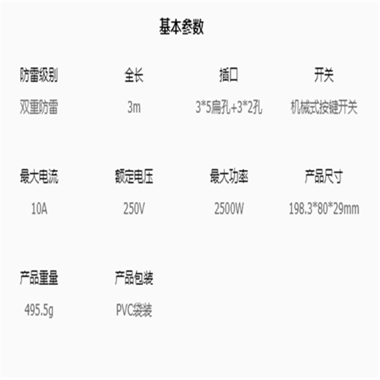 公牛防雷插線板GN-H1330基本參數(shù)圖