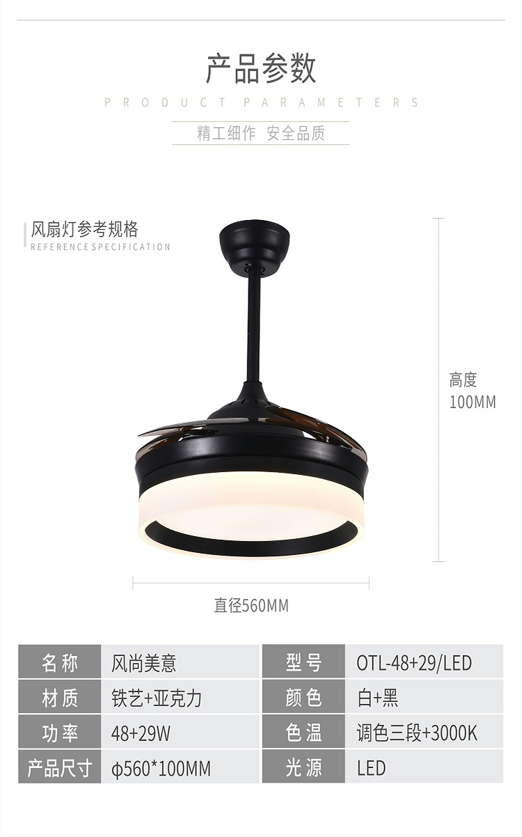 歐特朗OTL-48+29/LED風尚美意|風扇燈|隱形風扇燈 各項參數(shù)如圖