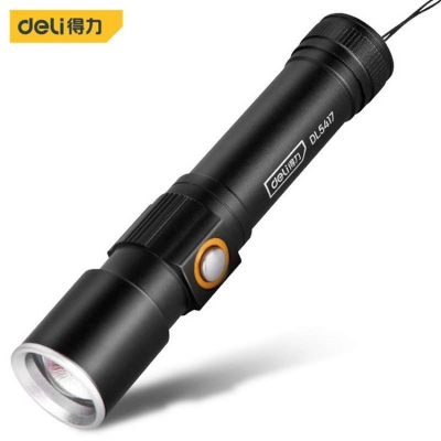 得力迷你手電筒調(diào)焦手電工作燈USB充電照明燈3W便攜DL5417