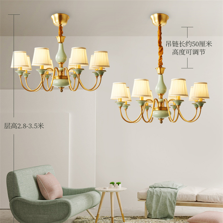 布藝紋路清晰,絲綢般的質感,增添了整燈的層次感,顯得優(yōu)雅端莊大氣