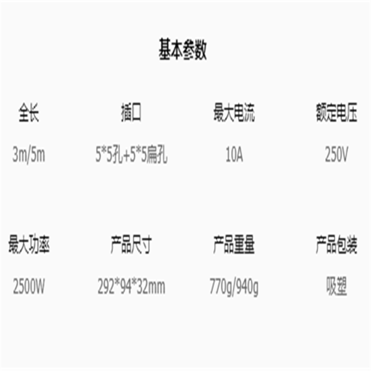 公牛新國(guó)標(biāo)插線板GN-605基本參數(shù)圖