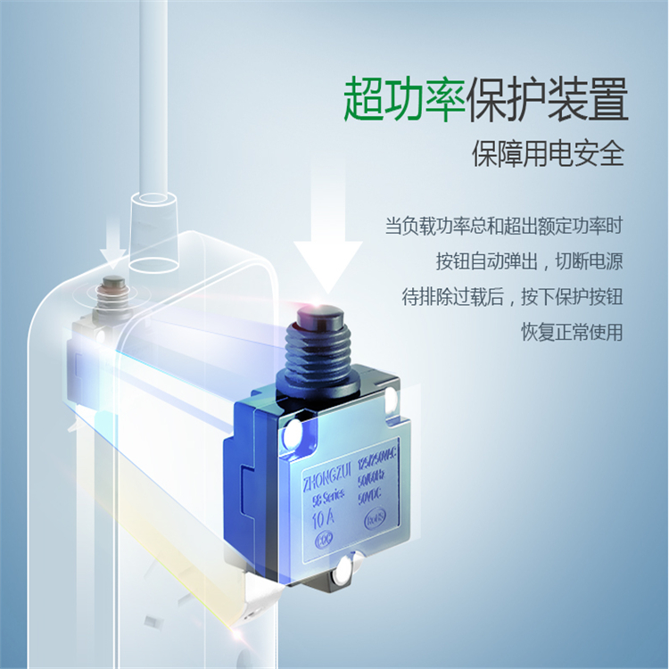 公?;A(chǔ)插線板GN-101超功率保護裝置,保障用電安全,當(dāng)負載功率總和超出額定