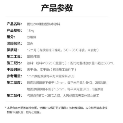 東方雨虹柔韌型防水涂料18G,滾筒或毛刷,氣溫控制在5-35度