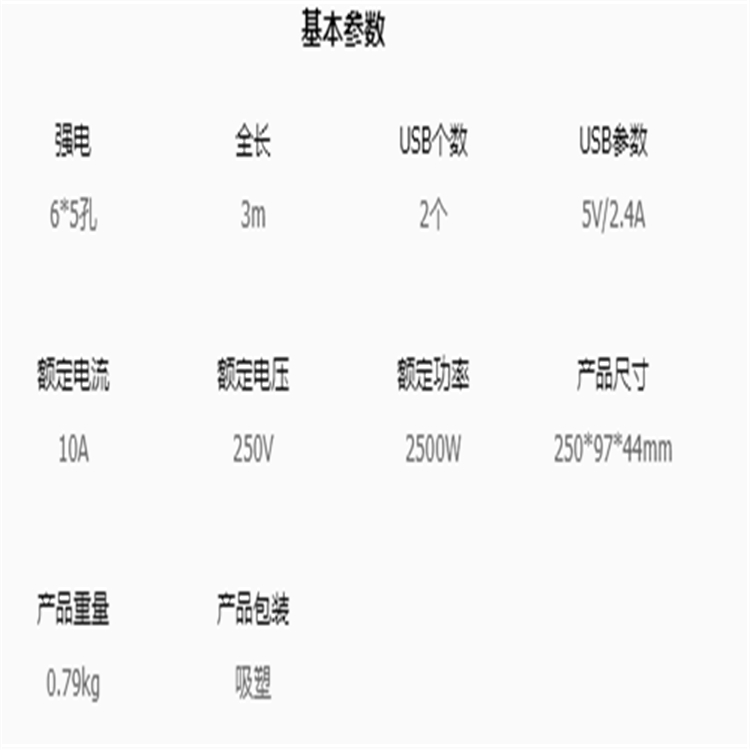 公牛抗電涌USB插線板GN-H306U基本參數圖