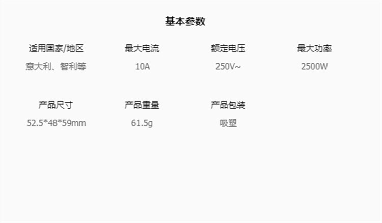 公牛轉(zhuǎn)換器GN-L01T轉(zhuǎn)換插頭基本參數(shù)圖
