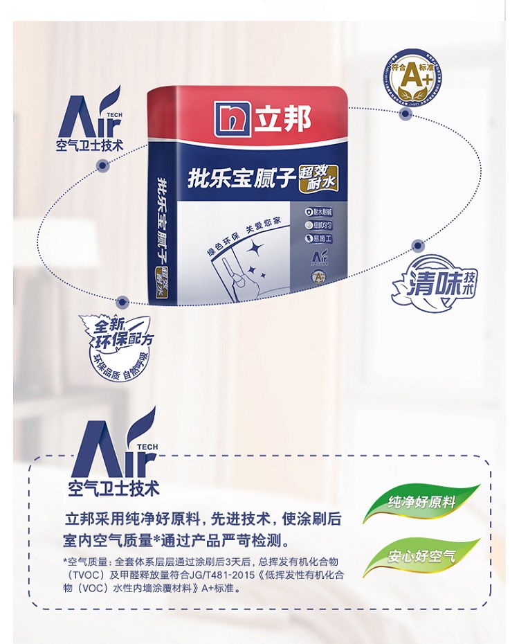 立邦采用純凈好原料,先進(jìn)技術(shù),使涂刷后室內(nèi)空氣質(zhì)量通過產(chǎn)品嚴(yán)苛檢測(cè)。