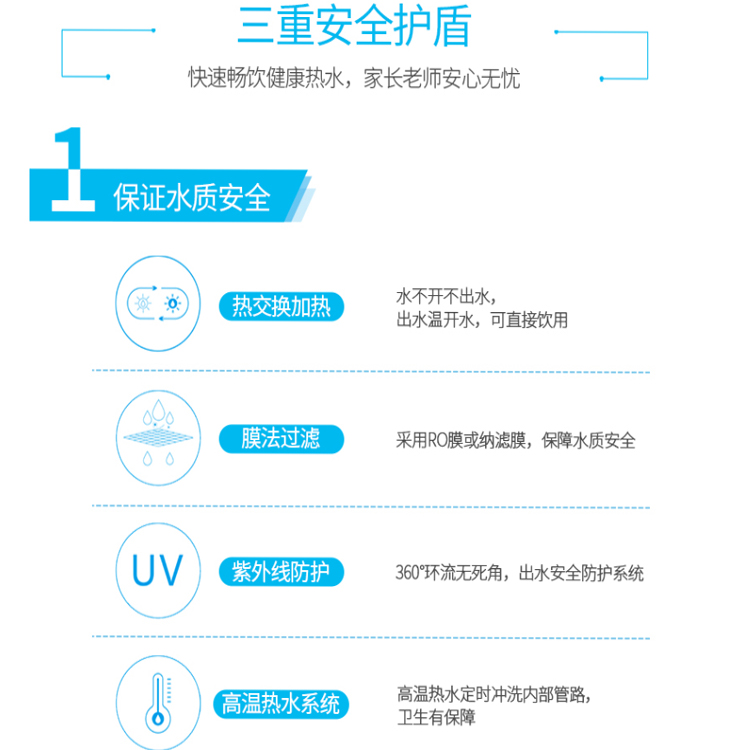 美的商務(wù)凈飲機(jī)飲水機(jī)一體機(jī)采用RO膜濾膜,保障水質(zhì)安全。