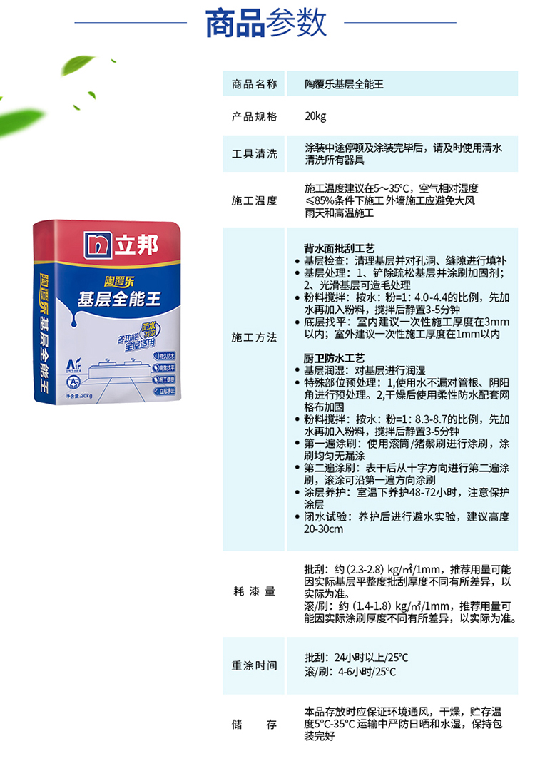 立邦 立邦陶覆樂基層全能王防水找平二合一 參數(shù)展示圖