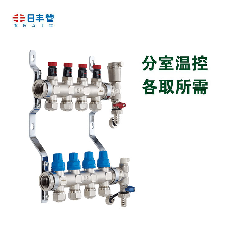 日豐地暖 分水器黃銅一體式家用大流量地熱鍛造 智能分集水器FN26,