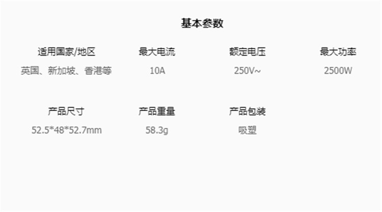 公牛GN-L01E英標旅行電源轉(zhuǎn)換器基本參數(shù)圖