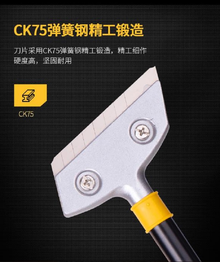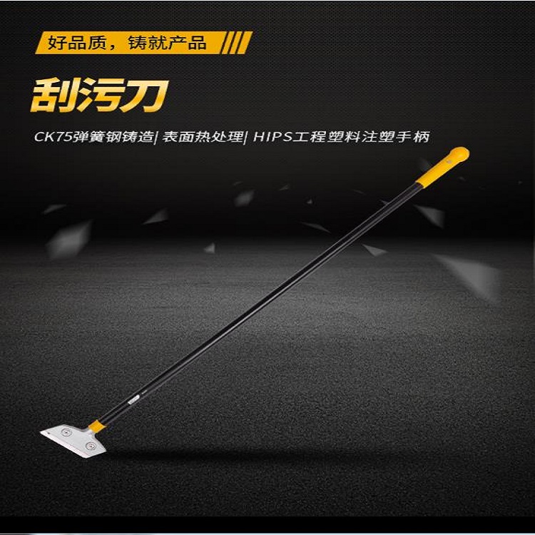 刮污刀產(chǎn)品刀桿采用金屬材料,尾部加厚,可敲擊使用。