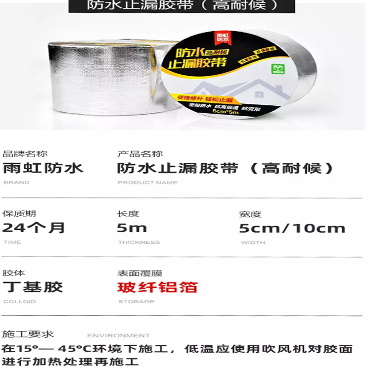 雨虹防水 自粘防水膠帶膠含量達(dá)60%,終生不固化,對(duì)于基層形變和開裂適應(yīng)性強(qiáng)- 型號(hào)名稱5cm5m耐候型