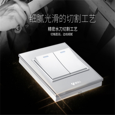 公牛二位雙控開關(guān)G22K21216A精密水刀切割工藝,切角圓潤,邊線細(xì)膩。