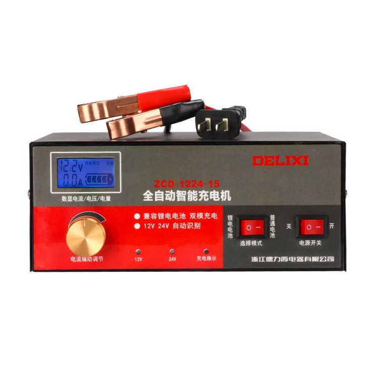 德力西移動電源電瓶充電器12v24v伏蓄電池摩托車汽車自動充電機