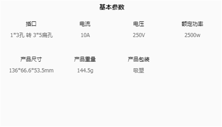 公牛GN-9333插座轉(zhuǎn)換器基本參數(shù)圖