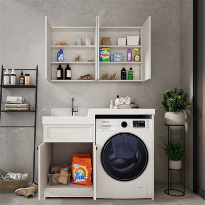 合理利用空間,讓洗衣機(jī)找到棲身之所,精選人造石盆,機(jī)洗手洗,輕松切換,豐富高效收納鋁合金洗衣柜靈活的收納空間,容納日常洗浴物品。