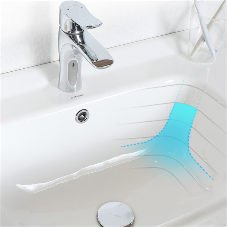 現(xiàn)代懸掛式浴室柜 精選德化高嶺土經(jīng)高溫煅制成陶瓷臺盆,釉面光滑潔白,日常清潔只需抹布輕輕一抹,輕松打理不費勁
