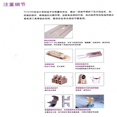 專業(yè)設(shè)計(jì)的密閉結(jié)構(gòu),經(jīng)久耐用的抗紫外聚碳酸醋燈體和前罩,結(jié)合特別設(shè)計(jì)的搭扣,有效地保證TCW300的防水和抗沖擊性能。