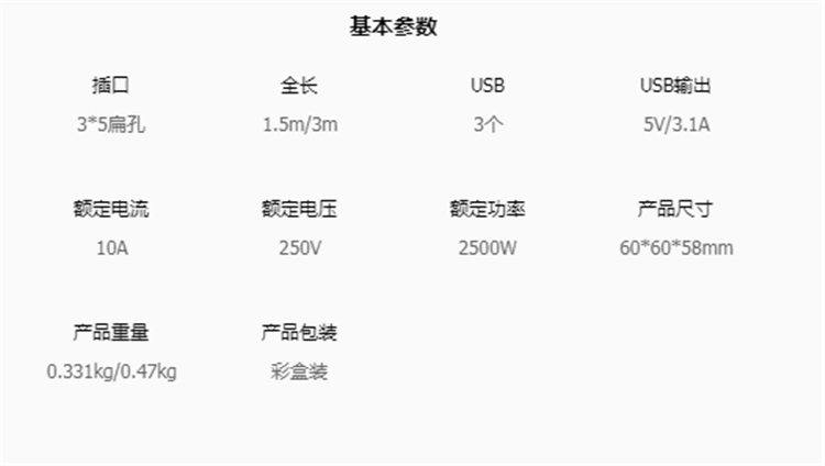 公牛魔方USB插座GN-U303U插座基本參數(shù)圖