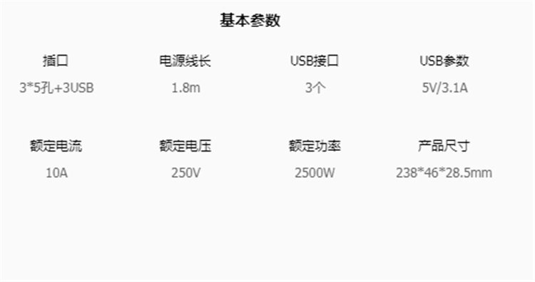 公牛小白USB插座GN-B303U基本參數(shù)圖