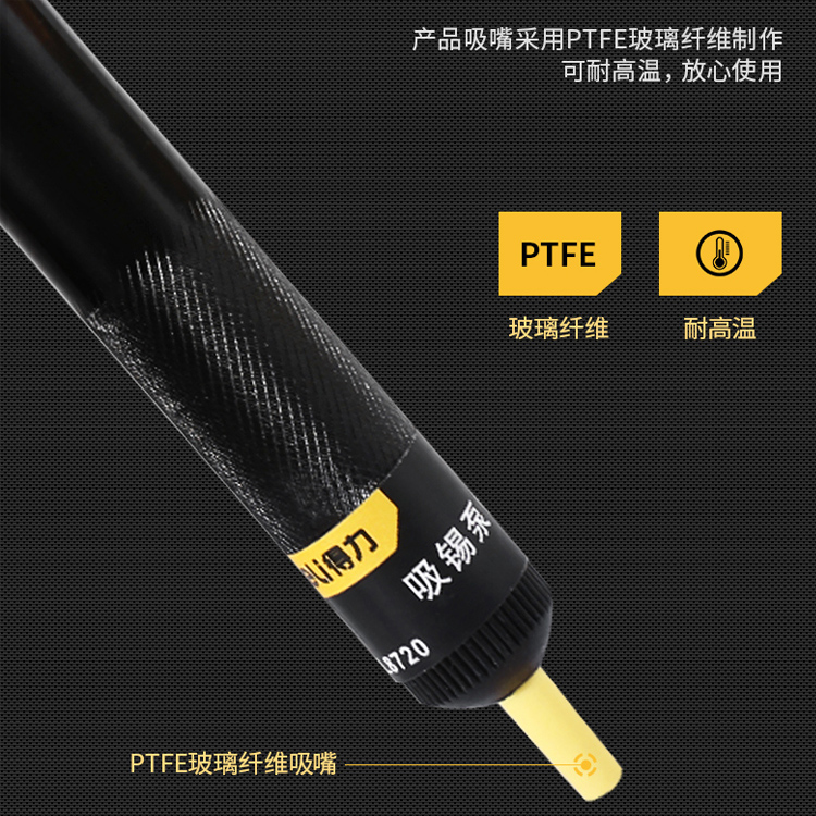 吸錫泵吸嘴采用PTFE玻璃纖維制作,可耐高溫,放心使用