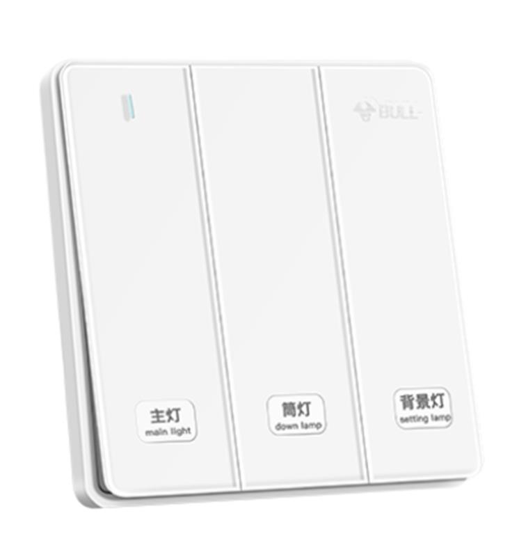 公牛三位雙控帶熒光標(biāo)識(shí)開(kāi)關(guān)G28K312B嵌入式標(biāo)識(shí),自由選擇,雙色注塑工藝,