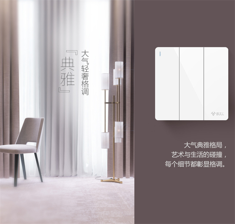 公牛三位雙控帶熒光標(biāo)識(shí)開(kāi)關(guān)G28K312B純粹輕簡(jiǎn),卻處處流露清爽舒適,細(xì)節(jié)營(yíng)