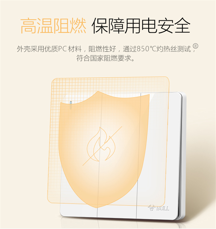 公牛三位雙控帶熒光標(biāo)識(shí)開(kāi)關(guān)G28K312B高溫阻燃,保障用電安全。