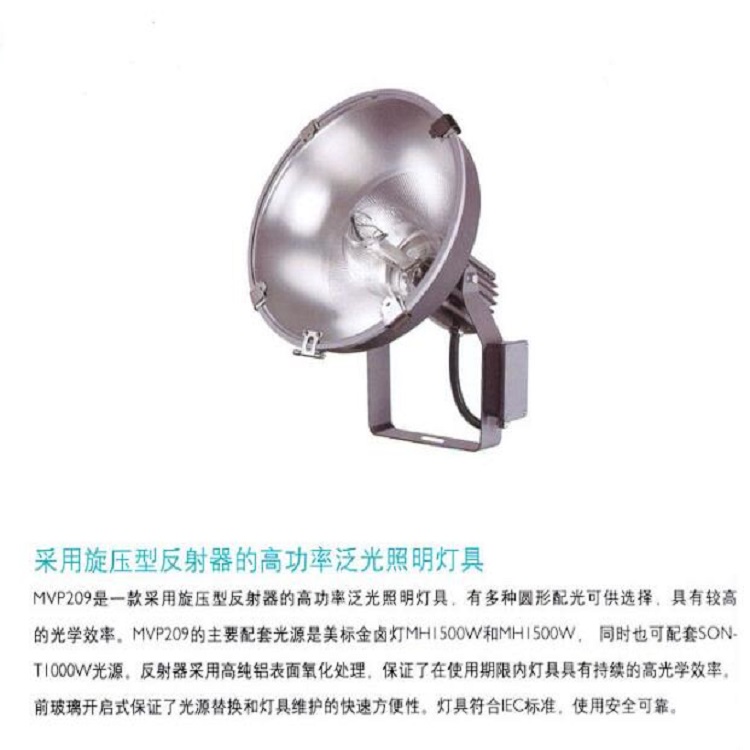 MVP209是一款采用旋壓型反射器的高功率泛光照明燈具,