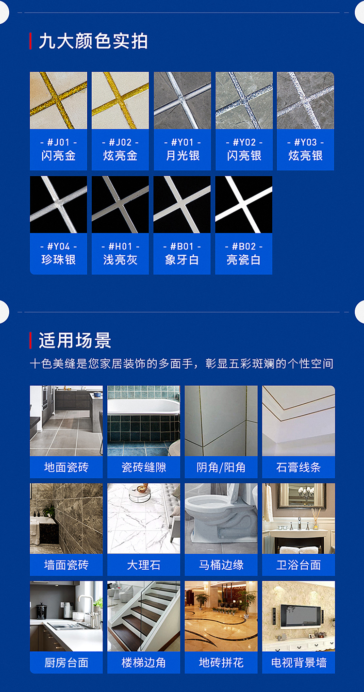 立邦美縫劑瓷磚地磚專用家用防水美縫勾縫填縫施工工具劑膠甄美縫:精選進(jìn)口高密度環(huán)氧樹脂原料,擺平劃痕,污漬不易滲透。持久煥發(fā)光亮色彩。
