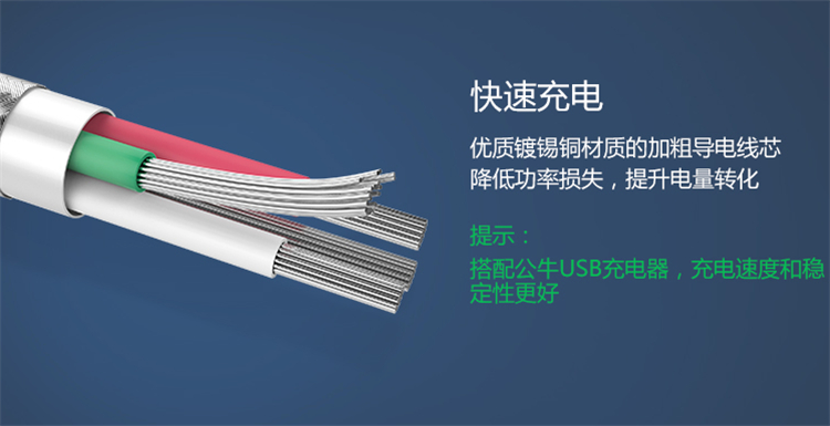 公??拐蹟喽弦粩?shù)據(jù)線GN-J810優(yōu)質(zhì)鍍錫銅材質(zhì)的加粗導電線芯,降低功率損